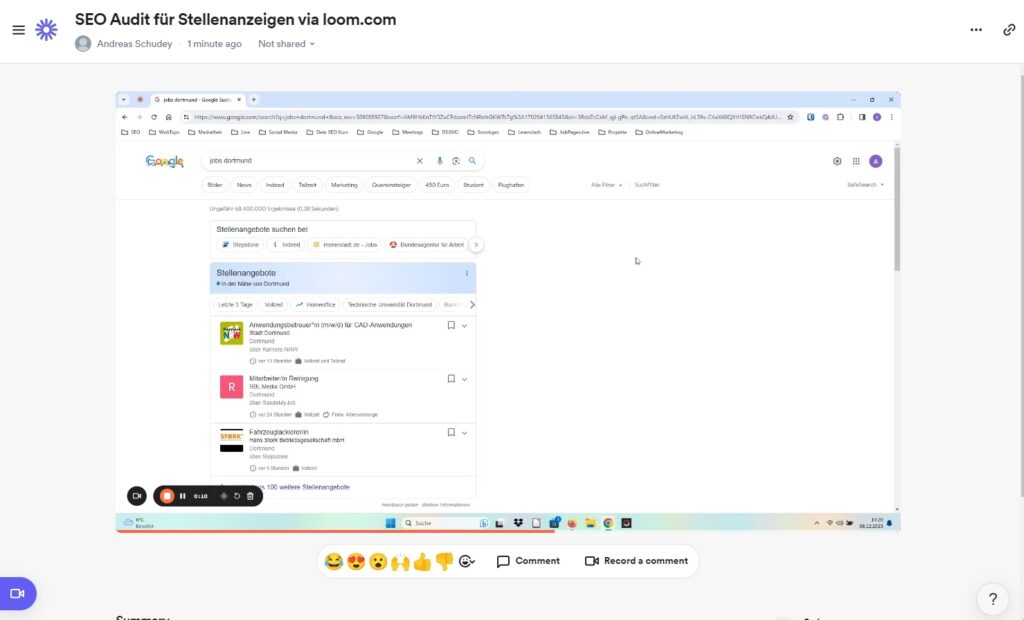 Du möchtest wissen, wie gut die Stellenanzeigen deiner Website für Google optimiert sind? Dann erstellen wir gerne ein komplett kostenloses SEO Video Audit.